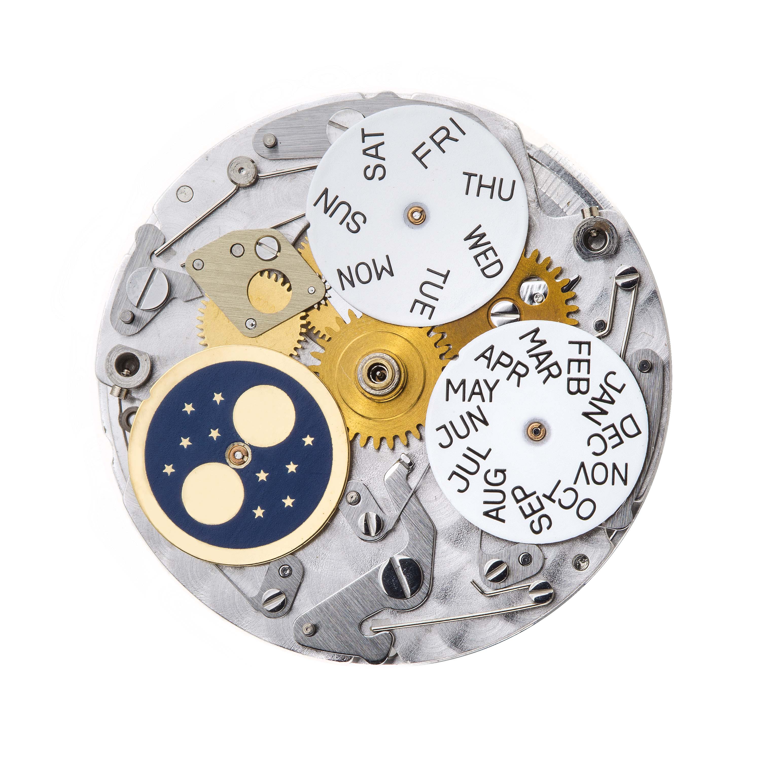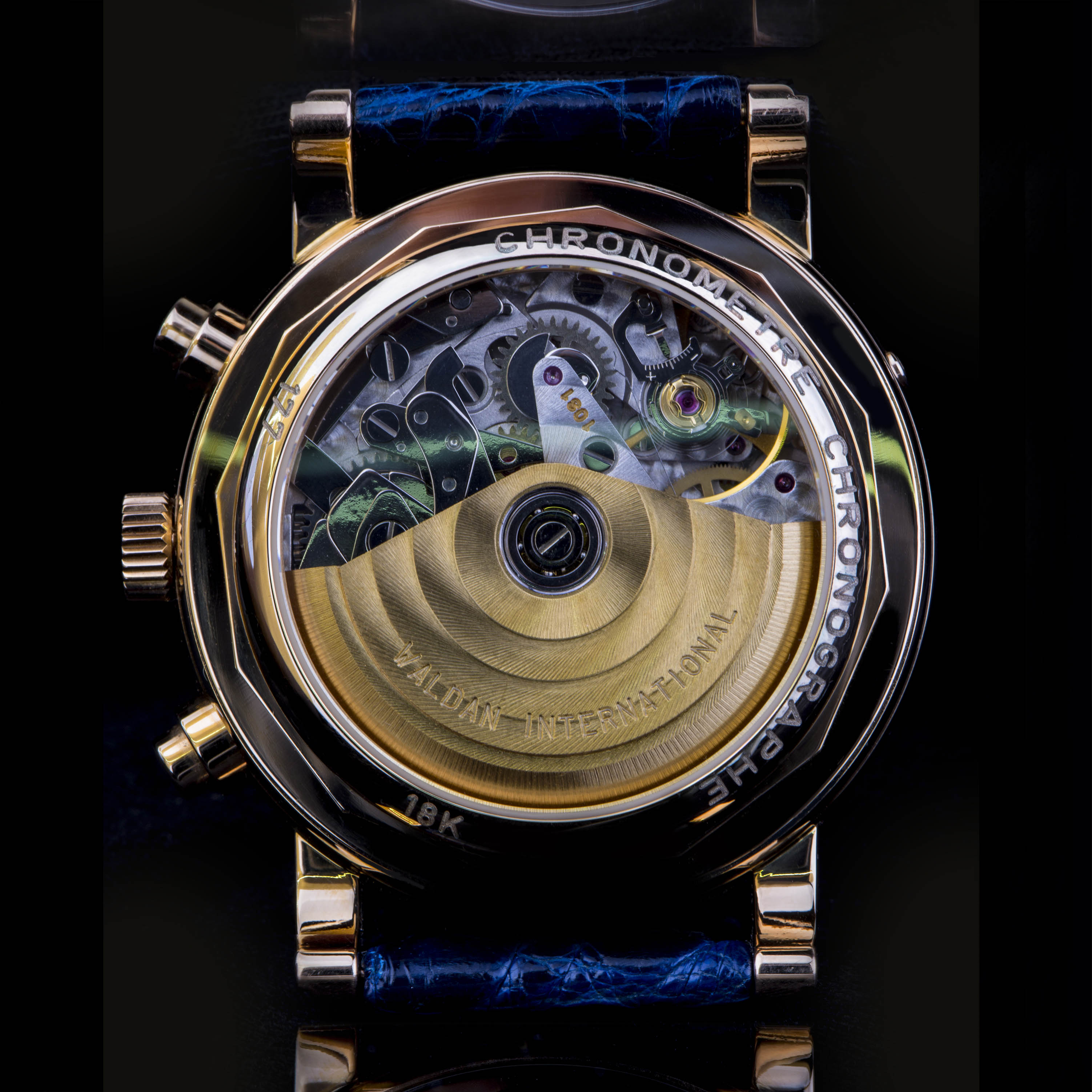COSC "Chronometer" certified Valjoux 7751 self-winding movement. 25 jewels, 28,800 vph/4Hz, 42-hour power reserve. Incabloc shock absorption system; bidirectional ball bearing winding rotor; flat self-compensating Nivarox hairspring; glucydur balance; highly polished screws. Cotes de Geneve finishing, 13-1/4 ligne 30mm diameter, 7.9mm thick.